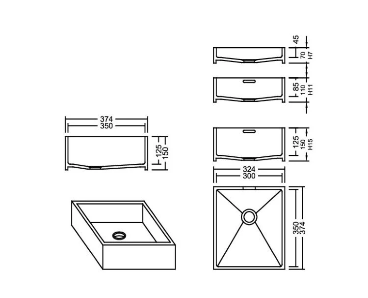 Auf- und Unterbauwaschbecken Eckig aus Mineralwerkstoff Staron 12 mm geklebt.