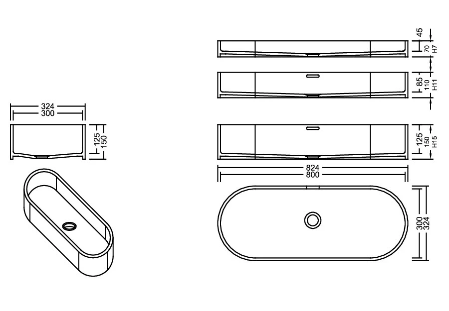 Auf- und Unterbauwaschbecken lang aus Mineralwerkstoff Staron 12 mm geklebt.
