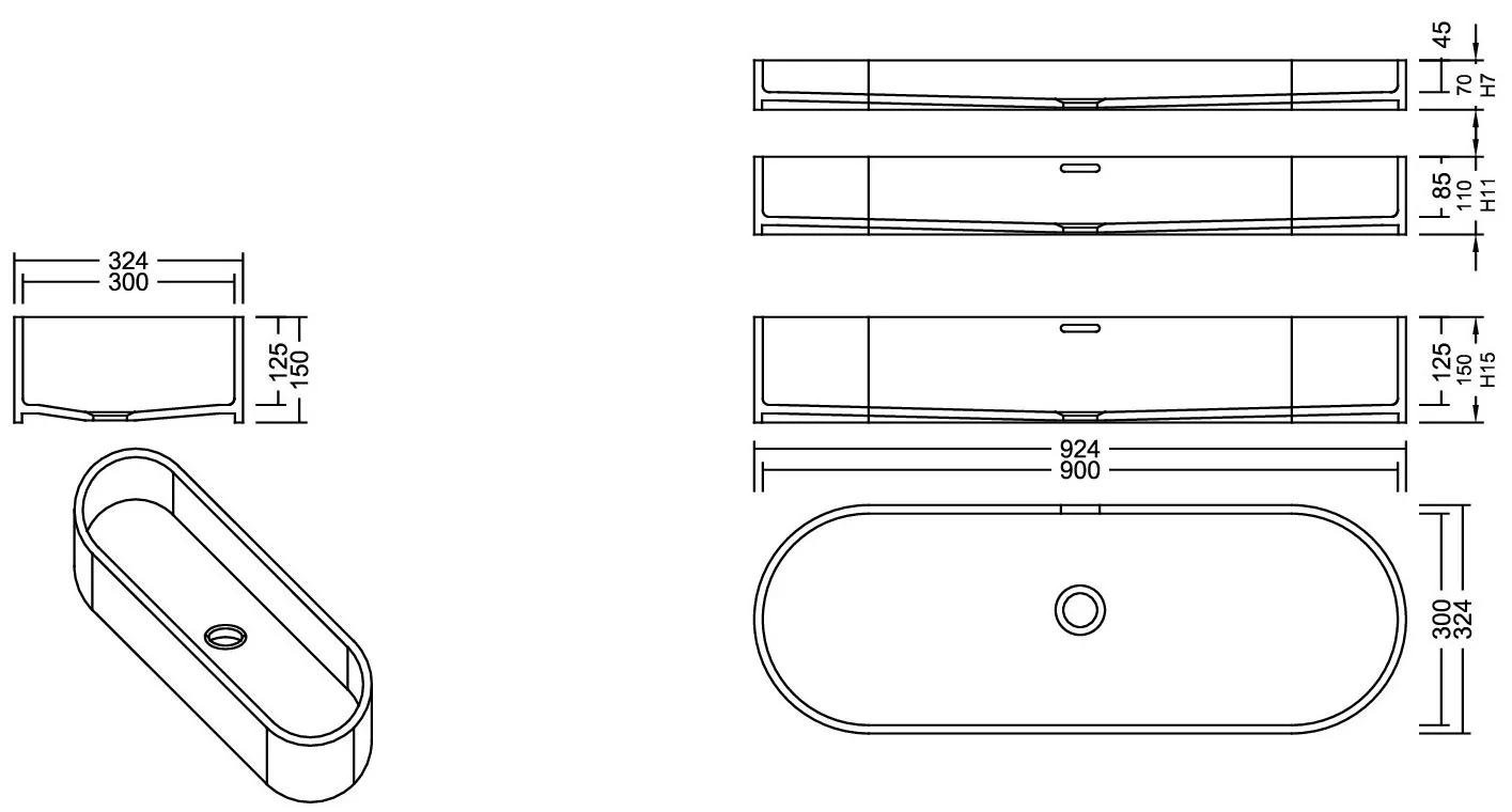 Auf- und Unterbauwaschbecken lang aus Mineralwerkstoff Staron 12 mm geklebt.