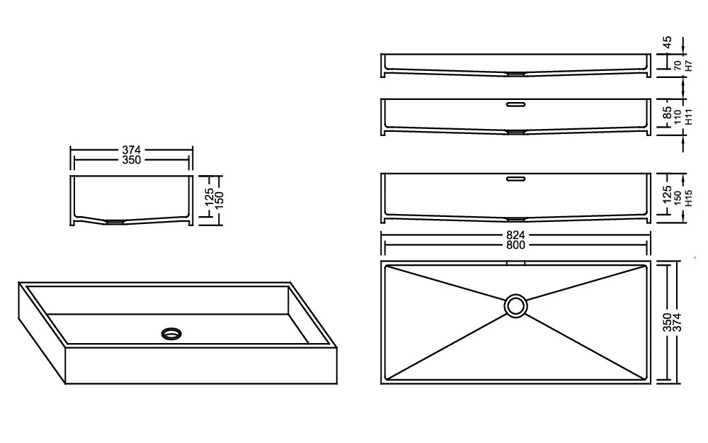 Auf- und Unterbauwaschbecken Eckig aus Mineralwerkstoff Staron 12 mm geklebt.