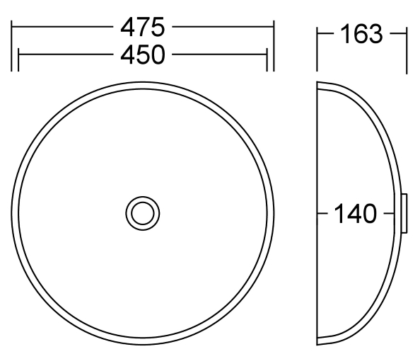 Unterbauwaschbecken Rund aus Mineralwerktoff Staron 12 mm tiefgezogen