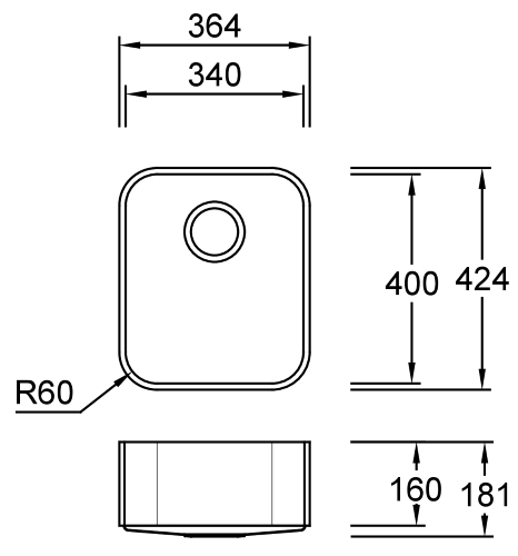 Combi R16 D Metallic Spülbecken Unterbau 340x160 mm